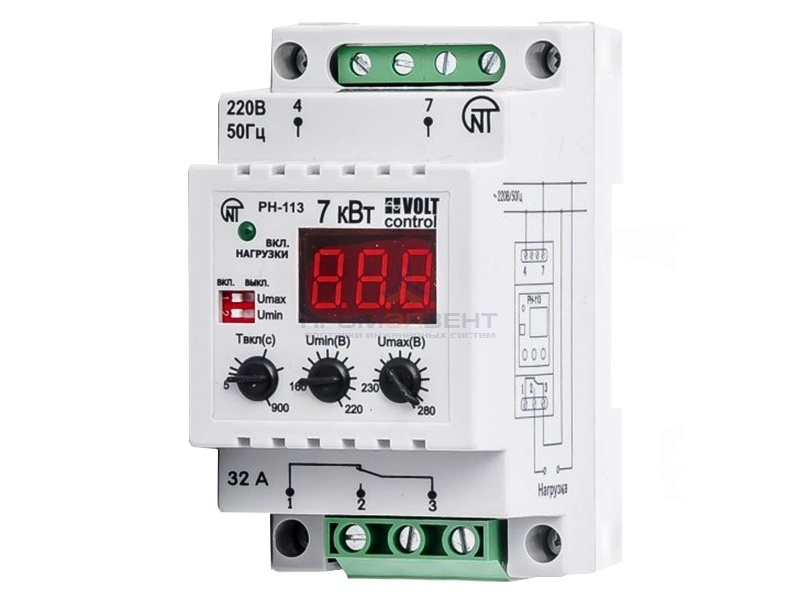 Заявки принимаются с реквизитами через почтуРеле напряжения PH-113 предназначено для отключения бытовой и промышленной однофазной нагрузки 220 В, 50 Гц при недопустимых колебаниях напряжения сети с последующим автоматическим включением после восстановления параметров сети: