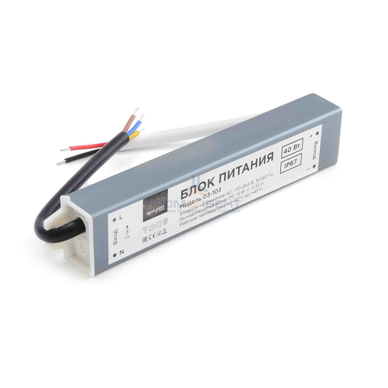 03-103 Блок питания 12В, (СТ), 40Вт, импульсный, IP67, 170-264В, 3,33А, алюм., сереб., 160*30*20мм. – поставка оптом и в розницу от компании «ПромЭлВент». Цены от производителя: доставка по Ногинске