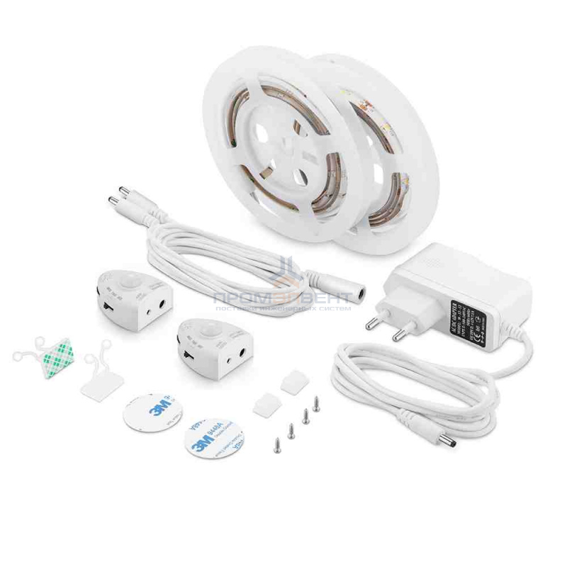 10-90 Комплект двойной светодиодной подкроватной подсветки, лента 12В, 2,4Вт/м, smd 2835, 30 д/м, IP65, 2 отрезка по 1,2м, диммируемые датчики, адаптер 1А, 3000К – поставка оптом и в розницу от компании «ПромЭлВент». Цены от производителя: доставка по Ногинске