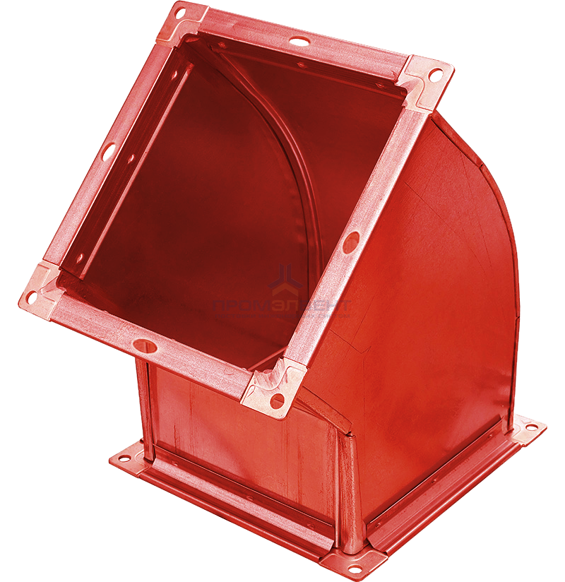 Отводы 45 градусов прямоугольного сечения предназначены для плавного направления системы дымоудаления под углом 45 градусов по горизонтали или вертикали.